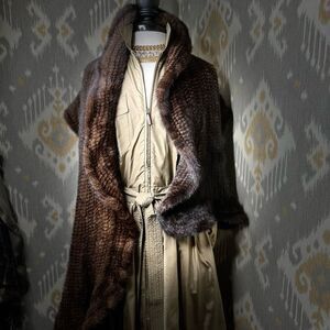 Natural Brown Knitted Mink Fur stole wrap scarf. Add some luxe to your cool weather look with a textural knit mink fur scarf, with a gorgeous ruffle effect. Rich warm tones of brown, combined with gorgeous movement in pattern, for a braided effect. A truly timeless wardrobe staple that can be styled with casual or formal attire. Perfect for a dressy evening out, or just to add some luxry to a day out on the town. This plush shawl makes great impact with a simple but complex looking textural, knitted construction. Wrap it around your neck as a scarf for the chilliest of Winter days or wear around your shoulders with a strapless cocktail dress. Lovely loose, or pinned with a statement brooch. Ample size offers many ways to drape and wrap. Reflective, supple, and soft. Tags removed so it is unbranded, and my best guess from the nap and finish of the fur, is mink or sable. Knitted mink or sable Ruffle effect One size fits all Flat Approx: width 16" x length 66" Lovely condition, no signs of wear, brand and fabric tags removed. See pics for beautiful natural nuance.