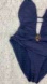 Dive into style with this elegant navy blue halter one-piece swimsuit. Perfect for a chic day at the beach or pool.