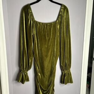 This Unknown brand olive green velvet bodycon midi dress is a stunning and sophisticated piece that exudes elegance with a touch of allure. It offers a soft, luxurious velvet texture with a comfortable stretch, ensuring a flattering and form hugging fit. This dress is perfect for date nights, holiday parties, or formal events.