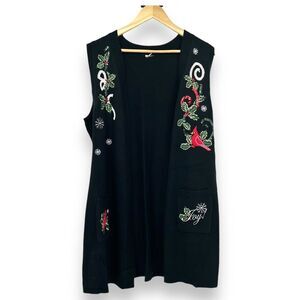 Unbranded Open Cardigan Vest Christmas Embroidered Black Cardinals Women's M