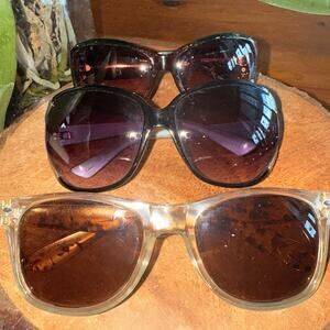 Set of 3 unbranded oversized fashion sunglasses - each pair is unique and interesting and will enhance your beach look this summer while protecting your eyes from the sun! These glasses are in excellent preowned condition - please see images for details.