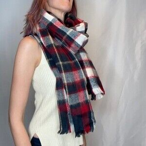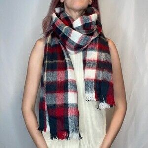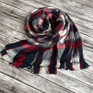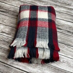Unbranded Partially Felted Knit Woven Blanket Scarf Short Fringe Plaid Winter