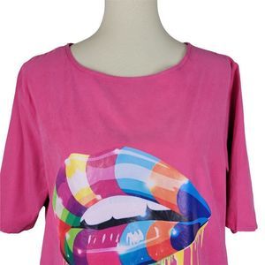 Unbranded Pink Colorful Lip Print Midi Shift Short Sleeves Pocket Dress Size XL