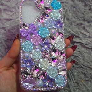 Unbranded Pretty Blue Floral Gemstone W/ Purple Bow💜 IPhone 16 Case (BRAND NEW)