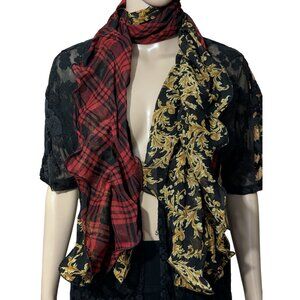 Unbranded Red Plaid Black Gold Elegant Scarf