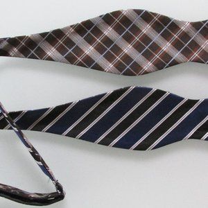 Description: Up for sale is an unbranded reversible self-tie butterfly bow tie. This bow tie is unmarked as to fabric content. The tie has reversible patterns in plaids & stripes. Please see the photos for a more accurate depiction of color and patterns. The bow tie width is 2.50".It features adjustable neck lengths from 13.75"-18.00." The bow tie is in excellent condition.