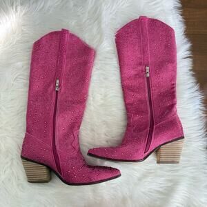 Unbranded | Rhinestone Boots Women Knee High Pointed Toe Chunky Sparkly Cowgirl