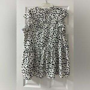 Chic and stylish black and white top with ruffle sleeves. Perfect for any occasion. Very flattering fit.