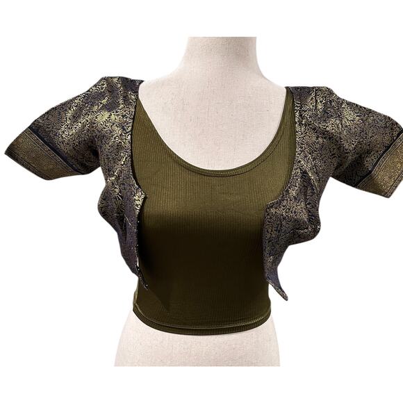 Unbranded Saree Sari Blouses Olive Stitched Stretch and Gold and Olive Brocade
