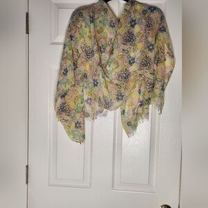 Unbranded Scarf Women Long Rectangle Multicolored Floral Print Lightweight Fringe 68"×24" Wrap Scarf
