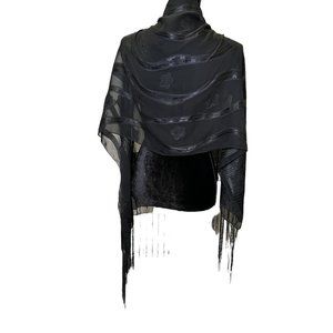 Unbranded Scarf Womens Long Rectangle Black Flower Stripes Semi Sheer Fringe