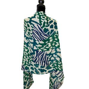 Unbranded Scarf Womens Long Rectangle Blue Green Animal Print Camo Fringe