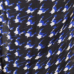 This Unbranded long, rectangular scarf is a lightweight accessory for women. Featuring a classic houndstooth pattern in blue and white, it is finished with a fringe detail. The scarf measures 72 x 36 inches.