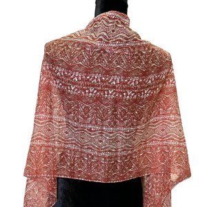 Unbranded long rectangle scarf for women in brown with Aztec pattern. Semi-sheer, lightweight, made from comfortable polyester and cotton blend. Measures 70 x 20.5.