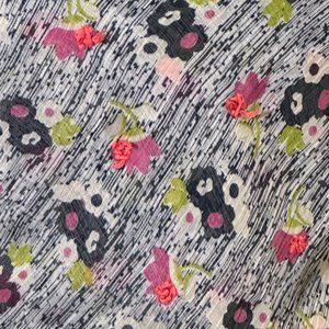 This stylish Unbranded Scarf features a unique floral pattern in black and white, accented with pink flower designs. Its semi-sheer fabric and tassel detail add a touch of femininity. Sized at 41x41, it's the perfect accessory for any woman's wardrobe.