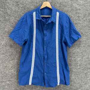 Unbranded Shirt Men L Large Blue Button Up Collared Short Sleeve Cotton Regular