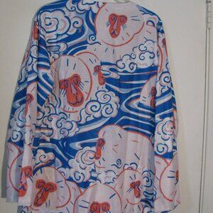 Unbranded silk look blouse in size medium. New without tags, this colorful blouse has a v neckline and long sleeves. Abstract print in orange, pink and blue on a white blouse. Lightweight, with the look of silk, super nice. Cute animal faces give this top a fun, whimsical feel. Made from 100% polyester, machine wash.