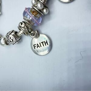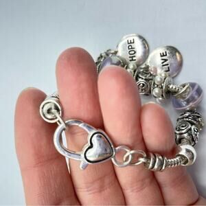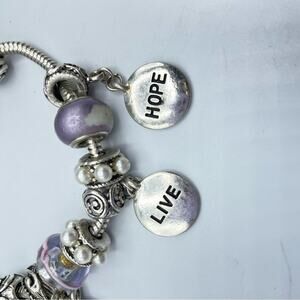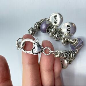 Unbranded Silver Tone & Purple Pandora Style Charm Bracelet