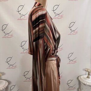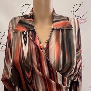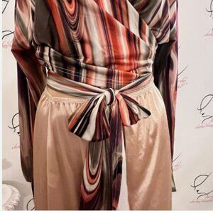 Unbranded. Size XL. Stretch Washable Wrap Stripe. Long Sleeve. Poly. Shoulder to hem 16.5". Bust is adjustable because it wraps.