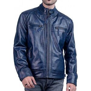 Unbranded Size XS Blue Motorcycle Leather Jacket Men Quilted