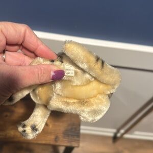 There is no tag located on the ear of this stuffed animal. This beauty is in great condition and absolutely adorable for any collection. This is unbranded and only has a tag that says made in Japan.