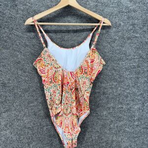 Unbranded Swimsuit Women M Medium Orange Geometric Sleeveless Spaghetti Strap