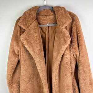 Unbranded Teddy Coat Sherpa Faux Shearling Tan Long Open Jacket Cozy Warm XXL