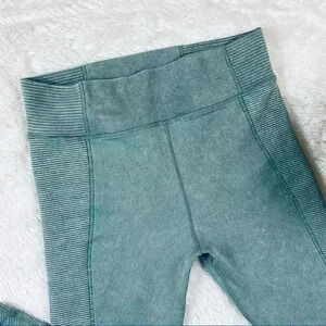 Unbranded Thick Warm Green Ribbed Compression Highrise Athletic 3/4 Legging