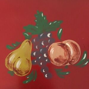 Vintage Hand Painted Metal Fruit Country Farmhouse Kitchen Mid Century Red Tole