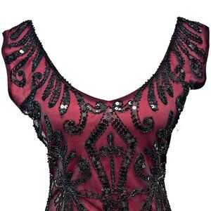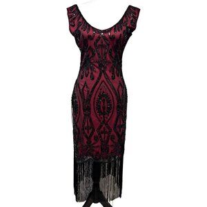 Unbranded Vintage 1920s Flapper Midi Dress Sequin A-Line Sheer Party Costume Red