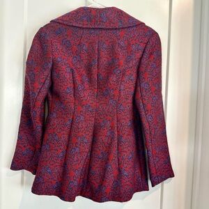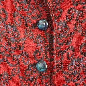 vintage red blazer with blue embroidered design. no size but fits like a small/medium