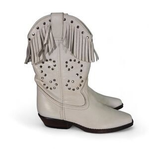 Unbranded Vintage Fringe Studded Western Cowboy Boots White Women's 6/36