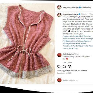 relevant style terms: girls, vintage, vests, sweater, curvy, feminine, versatile, vintage fashion, casual, streetwear, loungewear, busty, office, dusty rose, cardigan, handmade, two tones, thrifted, school, handknit, relaxed fit, coquette girl, school, spring, cover up, thrifted, cinch, light jacket, vest