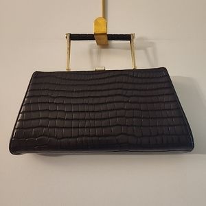 Unbranded Vintage Looking 70s Croc Print Brown Leather Top Handle Satchel Handbag in excellent condition no flaws to mention. Measures W 10in H 5in D 2in
