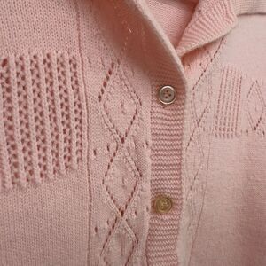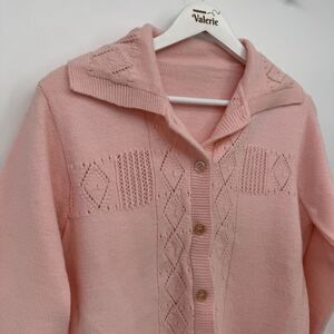 Unbranded Vintage Pink Acrylic Cardigan Sweater Wide Collar Coquette S-M