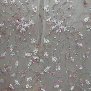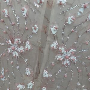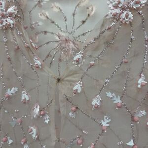 Details: sheer, allover beaded, looks to be handmade, super short for a dress, needs work to add a lining/extra layer for length