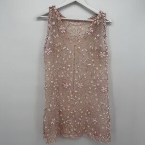 Unbranded Vintage Pink Beaded Sheer Sleeveless Overlay Womens XS-S