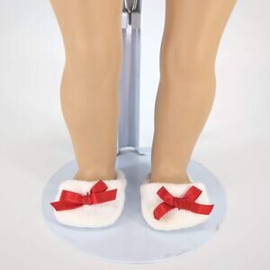 Unbranded White Fabric Doll Slippers/Slides with Red Ribbons for 18" Dolls - GUC
