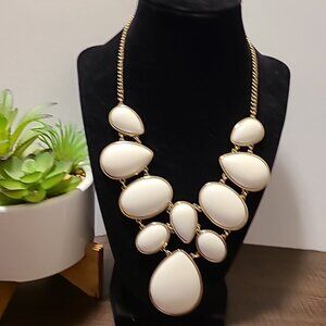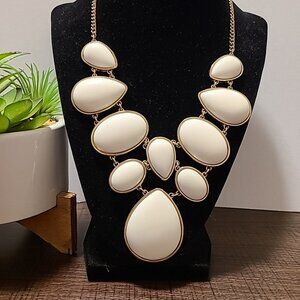Unbranded White & Gold Tone Beaded Bib Necklace Ladies Vintage Statement Dressy