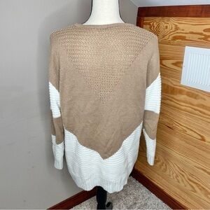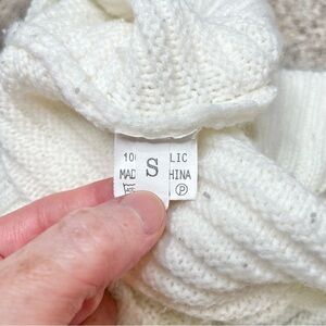 Unbranded White Tan Colorblock Crewneck Oversized Knit Long Sleeve Sweater Small