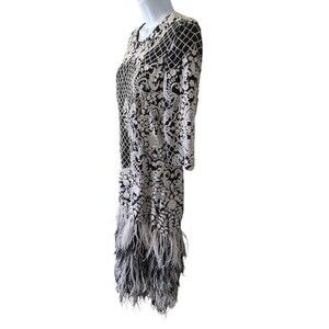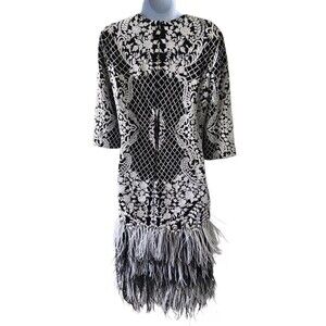 Unbranded White/Black Lace Overlay Feather Detail Lined Dress No Size Tag *Read*