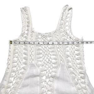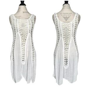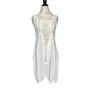 Pre-owned women’s unbranded white beach open crochet knit tank cover up mini dress with a scalloped hem. Wear over a bathing suit or bralette and shorts for a fun and flirty look.
