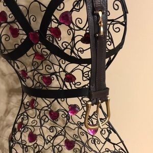 This unbranded women's belt features a beautiful floral embroidery design in multicolor, with a purple plastic shell. It has a normal belt width and fits waist sizes 38-39 inches. The belt is adorned with a metal buckle and is adjustable in size, making it a stylish and practical accessory for any outfit. The colorful floral theme adds a touch of nature-inspired charm to any wardrobe, making it a versatile and eye-catching choice for women who love floral patterns and feminine details.