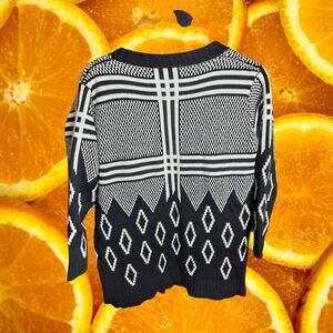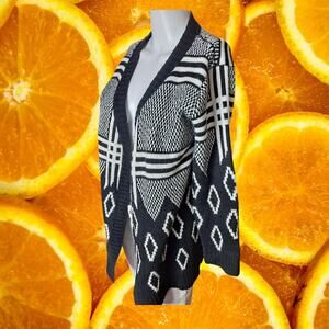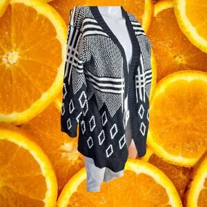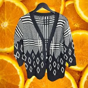 Unbranded Women's Black-White Knitted Open-Front Cardigan