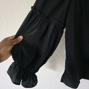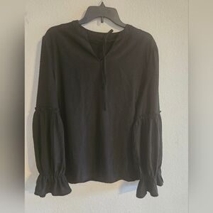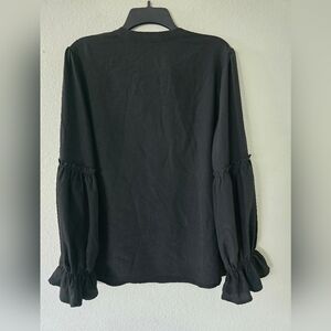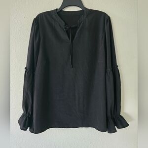 Unbranded Womens Blouse Plus size 1X Black Bell Ruffle Long Sleeves Tie Neck
