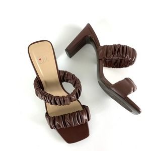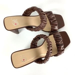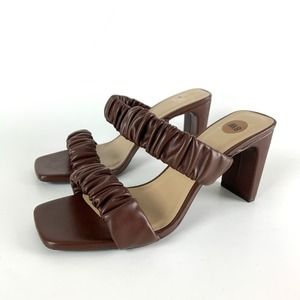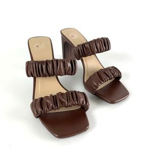 Womens Brown Double Strap Open Toe Block Heel Slip On Sandal Size 8