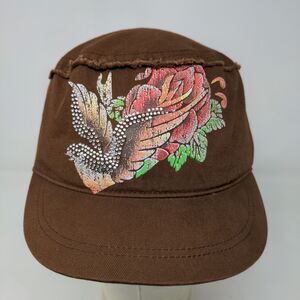 Unbranded Women's Cadet Cap Brown Size OSFA 100% Cotton Rhinestone Bird Logo