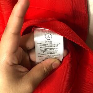 Unbranded Womens Dress Size S Red Bandage Bodycon Short Sleeve Fitted Sexy. In pre-owned condition. There is no brand but resembles the quality and design of a Herve Leger dress. Zipper on the Back. Mini, short length. Party, cocktail dress. V-neck. 90% Rayon 9% Nylon 1% Spandex.