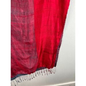 Unbranded Women's Fringed Scarf Red Gray One Size