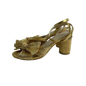 Unbranded Women's Gold Lame Bow Pleated Block Heeled Sandals Sz 42